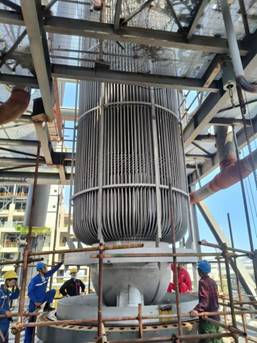 興華科技公司凈化裝置兩臺變換爐內件順利吊裝成功